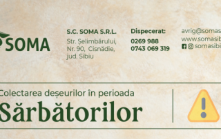 Stimați cetățeni, Operatorul SOMA ne informează ca datorită Sărbătorilor Pascale, colectarea fracțiilor plastic și metal,
